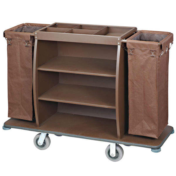 Customized Color Hotel Maids Cart Trolley , mobile Guest Room Cleaning Trolley Images |